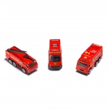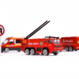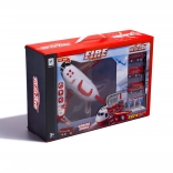 Součástí sady jsou 3 červená vozidla: hasičský vůz s žebříkem, obrněný transportér a městské zásahové auto + 7 dopravních značek. Praktické madlo na horní části usnadňuje přenášení i otevírání.