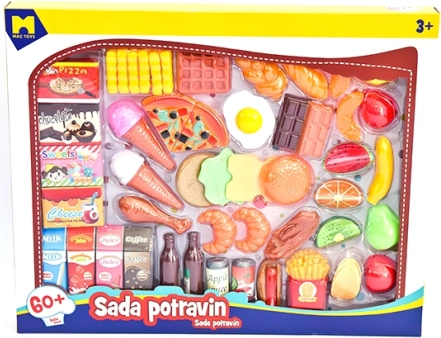 Objevte realistické makety potravin, které dětem umožňují hravě poznávat svět jídel. Tato sada obsahuje rozmanité druhy jako ovoce, zeleninu, nápoje a pečivo.
