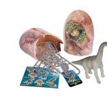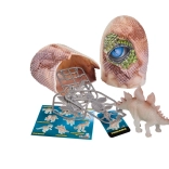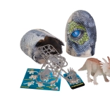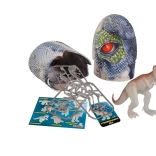 Tato zábavná figurka dinosaura ve vajíčku přináší dětem i dospělým radost z objevování. Každé vejce ukrývá detailně zpracovanou figurku o velikosti 10 cm, mini skládačku kostry dinosaura a stylovou sběratelskou kartičku. Dinosaurus svítí ve tmě, takže potěší i po zhasnutí světel.