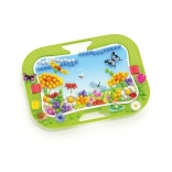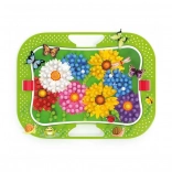 Děti skládají barevné vzory na děrovanou podložku a doplňují je figurkami hmyzu – motýly, vážkami a beruškami. Skvělý způsob, jak rozvíjet fantazii a cit pro barvy.