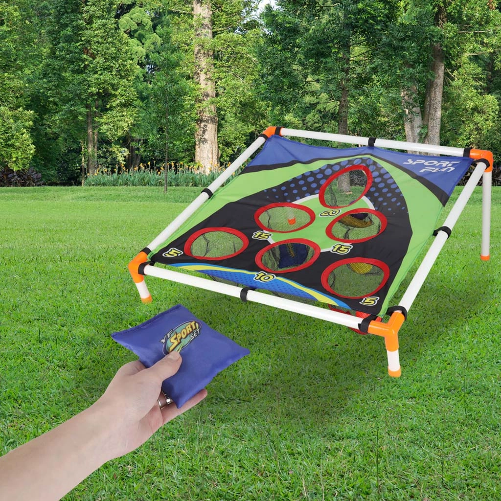 Zábavná házecí hra pro děti rozvíjející koordinaci oko–ruka, přesnost a rychlé reakce. Lehký rám se skloněným terčem s číslovanými otvory nabízí různé bodové výzvy. Vhodné na zahradu i do interiéru, jednoduché sestavení a snadné přenášení. Součástí jsou pytlíky na házení i plastové míčky.