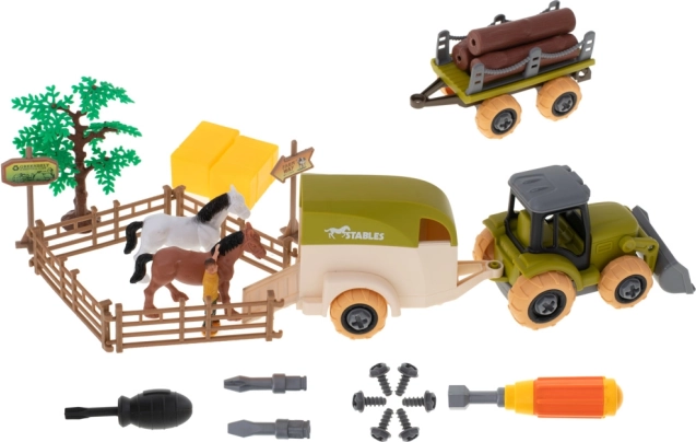 Přivítejte vaše děti na hospodářské farmě! Tento hrací set je ideální pro děti, které milují farmářský život a chtějí se ponořit do světa zemědělství. V balení najdete vše, co malý farmář potřebuje, včetně traktoru, koní, přívěsů a šroubováků.