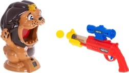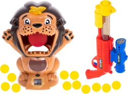 Vhoď míček přesně do tlamy a staň se králem džungle! Interaktivní terč ve tvaru lva odmění přesný zásah charakteristickým řevem a na digitálním displeji přičte body. Ruční blaster s pružinovým mechanismem a horním zaměřovačem usnadní míření, měkké pěnové míčky jsou šetrné a bezpečné pro hru v dětském pokoji.