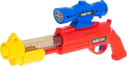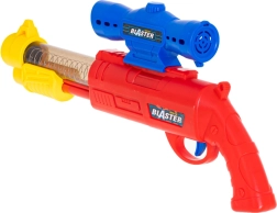 Ruční blaster s pružinovým mechanismem se snadno nabíjí a míří. Lehoučké pěnové míčky jsou šetrné a vhodné pro hraní v interiéru.