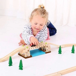 Tento dřevěný most je ideální pro všechny malé milovníky vlaků. Je vyroben z kvalitních a zodpovědně získaných přírodních materiálů, což zaručuje jeho dlouhou životnost a bezpečnost při hraní.