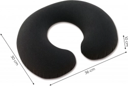 Konstrukce z odolného PVC kombinovaná s jemným velurem na povrchu zajišťuje příjemný kontakt s pokožkou a vyšší odolnost proti oděru. Polštářek má po nafouknutí rozměry 36 × 30 × 10 cm, po vyfouknutí jej snadno složíte do kabelky či příručního zavazadla.