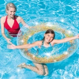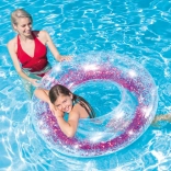 Nafukovací kruh INTEX Sparkling Glitter je ideální volbou pro bazén, jezero i moře. Díky transparentnímu materiálu a třpytkám uvnitř vytváří na vodní hladině efekt jiskření, který dodá vašemu odpočinku jedinečný styl. Robustní konstrukce z masivního vinylu zajistí dlouhou životnost a pohodlné použití.