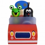 KRTEK a Myška i klíček jdou snadno vyjmout a vyměňovat, takže si děti mohou přizpůsobit autíčko vlastní představě a tvořit nové příběhy z výletů.