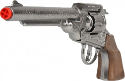 Stříbrný revolver, který je součástí sady, je osmiranný a bohatě gravírovaný, což přidává na autentičnosti každé přestřelce. Šerifská hvězda vás potom povýší na pravého strážce zákona.