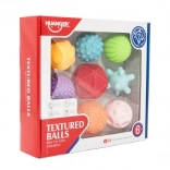 Každý míček má jedinečnou barvu a texturu, což zajišťuje rozmanitost pro smyslovou hru vašeho dítěte.