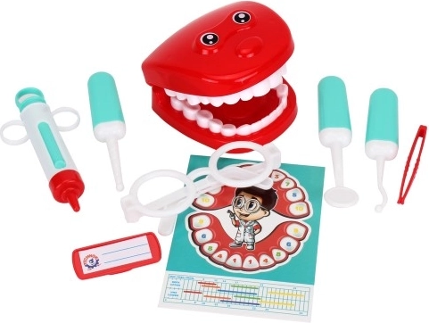 Objevte zábavnou a poučnou hru na zubaře s touto dětskou sadou. Obsahuje model čelistí, bezpečné nástroje a doplňky pro realistickou hru, která pomáhá dětem překonat strach ze zubaře, učí je dentální hygieně a rozvíjí jemnou motoriku i fantazii.