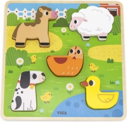 VIGA používá kvalitní dřevo a hladké povrchy pro bezpečné hraní. Silné dílky se dobře drží, takže jsou perfektní pro malé dětské ruce. Puzzle podporuje samostatnost, koncentraci i kreativní hru.