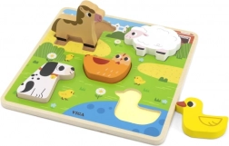 Děti při vkládání správných dílků trénují logiku, paměť i rozpoznávání tvarů a zvířecích motivů z farmy.