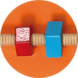 Labyrint s kuličkou a šroubky na závitu trénují přesnost prstů, úchop a koordinaci oko–ruka. Děti posouvají kuličku a procvičují trpělivost a soustředění.
