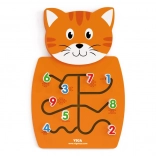 Dřevěná kočka s labyrinty pro pohyb čísly a rozvoj jemné motoriky.