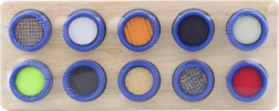Deska a válce nabízejí deset odlišných materiálů, které podporují rozvoj hmatového vnímání a kognitivních dovedností.