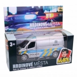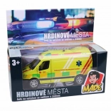 Objevte akční zábavu se sérií autíček Hrdinové města z řady City Collection. Záchranářské auto na zpětné natažení se díky světelným a zvukovým efektům postará o realistickou hru. K dispozici jsou 3 druhy – sanitka, policie a hasiči. Napájení zajišťují 2 baterie LR41.