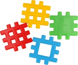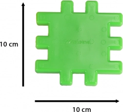Dílky o rozměru cca 10,5 × 10,5 cm s mřížkovým zámkem se pohodlně drží a bezpečně propojují – perfektní pro malé ruce od 2 let.