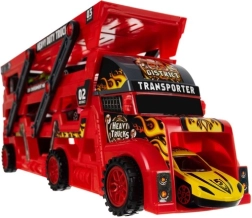 Transportér je vyroben z kvalitního plastu, autíčka z kombinace kovu a plastu. Intuitivní manuální vystřelovač umožní bleskové starty bez baterií. Kompaktní rozměry kamionu (30 × 12 × 7 cm) a autíček (7 × 2 × 3 cm) z něj dělají ideální hračku do pokojíčku i na cesty.