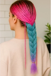 Dodejte svému účesu okamžitou změnu pomocí syntetických ombré copánků v pastelové kombinaci růžová–tyrkysová–fialová. Lehká vysokoteplotní vlákna jsou příjemná na nošení, nezatěžují vlasy ani pokožku hlavy a skvěle drží tvar po celý den. Ideální pro každodenní styling, party, cosplay i festivaly – připevníte a sundáte kdykoli chcete.