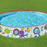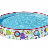 Bazének se postaví sám při napouštění. Žádné stelaže ani pumpičky – stačí rozložit a napustit vodou.