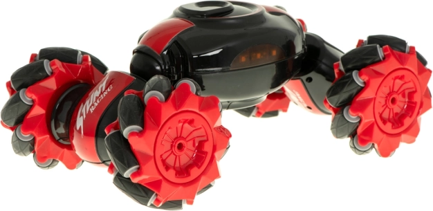 Zábavné a odolné RC auto s dvojím ovládáním pro akční jízdu i triky. Díky vícesměrným kolům, 360° otočkám a dvěma režimům jízdy (race/off-road) zvládne rychlé sprinty i náročný terén. Součástí balení jsou dva ovladače: klasický joystick a gestové ovládání Gravity Sensor s frekvencí 2,4 GHz.