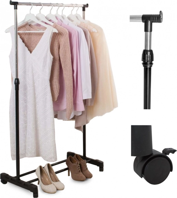 Teleskopický šatní věšák na kolečkách je všestranné řešení pro organizaci oblečení v domácnosti, kanceláři, obchodě nebo kadeřnictví.