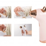 Do integrované nádobky lze nalít vodu, micelární vodu, tonikum nebo lehké sérum. Přístroj má dvoustupňovou regulaci výkonu, informační LED indikaci a nabíjení přes USB. Díky nízké hmotnosti a kompaktním rozměrům jej snadno vezmete do kabelky či cestovní tašky a dopřejete si péči kdykoli a kdekoli.