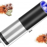 Užijte si snadné, čisté a přesné dochucování s elektrickým gravitačním mlýnkem. Je vyroben z kvalitních materiálů, má moderní černo‑stříbrné provedení a díky průhledné nádobce vždy víte, kolik koření zbývá. Integrované LED světlo se aktivuje při naklonění a pomůže vám dochutit pokrmy i při slabém osvětlení.