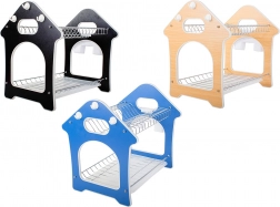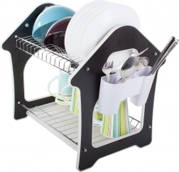 Praktický dvoupatrový odkapávač na nádobí s tácem zachytávajícím vodu, držákem na příbory a třemi háčky pro kuchyňské doplňky. Nabízí velkou kapacitu, odolnou konstrukci z kovu a plastu a stabilní základnu, která chrání pracovní desku před vlhkostí. Stylový design ve tvaru domečku skvěle zapadne do každé kuchyně.