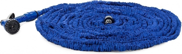 Naše zahradní hadice je vyrobena z kvalitního polyesterového popruhu, dvojité vrstvy latexu a ABS plastu, což jí dodává odolnost a flexibilitu. Hadice je velmi lehká a po napojení na vodu se dokáže prodloužit až na 45 metrů, čímž šetří místo ve skříni nebo na zahradě.