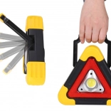 Multifunkční výstražný trojúhelník 3v1 kombinuje výstražné LED světlo, pracovní COB LED svítilnu a powerbanku s možností USB i solárního nabíjení. Odolná konstrukce, nastavitelný stojan a až 5 režimů svícení z něj dělají ideální nouzové světlo pro auto, dílnu i outdoor.