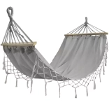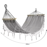 Užijte si klidný odpočinek venku i doma v pohodlné houpací síti GARDLOV o rozměrech 200 × 100 cm. Díky pevné bavlně s příměsí polyesteru, dřevěným rozpěrkám a nosnosti až 200 kg nabízí stabilitu, komfort a skvělou ventilaci i v horkých dnech. Pletené závěsné šňůry se postarají o bezpečné zavěšení, snadné sbalení do obalu zase o pohodlné přenášení na zahradu, balkon, terasu nebo k vodě.