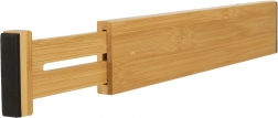 Oplev den perfekte organisering med en praktisk skuffeorganisator, der gør det nemt at arrangere alle dine ting. Adskil forskellige produkter i én skuffe og nyd et æstetisk udseende takket være bambusmaterialet. Organisatoren er ideel til køkken, badeværelse eller garderobe med en justerbar længde fra 34 til 43,5 centimeter, så den passer perfekt i dine skuffer.