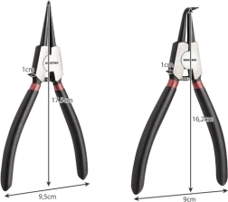 Praktisk sæt til service, værksted og hjemme-reparationer. Med seegerringtænger kan du nemt og sikkert udvide eller komprimere låseringe på vanskeligttilgængelige steder. Lange, skridsikre håndtag sikrer et sikkert greb og præcis værktøjsføring.