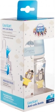 Formet antikolikflaske EasyStart fra den eksklusive kollektion BONJOUR, PARIS! med en kapacitet på 120 ml, som er meget nem at fylde, vaske og holde under fodring. Fremstillet for din babys glade mave. Flere oplysninger om BONJOUR, PARIS!-flaskerne finder du i denne video: https://www.youtube.com/watch?v=fBLIQfbLKoQ Den brede hals gør det lettere at fylde og rengøre, og den tydelige skala hjælper med at kontrollere, hvor meget barnet har drukket. Indeholder en antikoliksut 0m+, som med sin form mest muligt minder om moderens brystvorte. Det gør det muligt at kombinere amning og flaskefodring. I flasken, lukket med en tætningsskive, kan du fryse eller transportere maden uden risiko for spild. Flasken er BPA-fri. Reservetsutter og tudkopper findes i afsnittet suttehoveder og tudkopper. Sødt print i fransk stil – unikt design. Den nye antikolikventil forhindrer dannelse af luftbobler i mælken, minimerer kolik, luftslugning og ophobning af gas. Sutten ligner i sin form moderens brystvorte – gør det nemt at kombinere amning med flaskefodring. Den brede åbning gør det nemt at fylde flasken, og den præcise skala gør det let at aflæse den indtagne mængde. Højkvalitets polypropylen (PP) og produktion på japanske maskiner sikrer høj kvalitet, sikkerhed og gennemsigtighed i flasken. Flasken er fremstillet i EU. Brugsanvisning: Af hygiejniske grunde skal alle adskilte dele af flasken og sutten vaskes grundigt før første brug og derefter steriliseres i kogende vand i 5 minutter. Vask før hver brug. Længerevarende kogning eller hårdt vand kan forårsage aflejringer. Fjern madrester fra flaske og sut efter brug, skyl, vask og steriliser derefter i damp-/elektrisk steriliseringsapparat eller i kogende vand. Vi anbefaler ikke at vaske flaske og sut i opvaskemaskine, da de anvendte midler kan beskadige produktet. Brug ikke kemiske desinfektionsmidler. Kontroller produktets tilstand før hver brug. Vær ekstra opmærksom på sutten, når barnets første tænder bryder frem. Test suttens kvalitet ved at trække den grundigt i alle retninger. Ved de første tegn på slid eller skade må produktet ikke bruges videre – udskift det med et nyt. Skruelåget må ikke strammes for hårdt, da sutten så ikke kan udluftes korrekt. Kontroller, at maden ikke lækker ud under skruelåget. Prik ikke huller i og forstør ikke hullerne i sutten – det kan ødelægge den. Hvis du varmer maden i mikrobølgeovn, husk at flasken skal være åben. Vær ekstra opmærksom ved opvarmning i mikrobølgeovn. Rør altid den opvarmede mad godt rundt og kontroller temperaturen før servering til barnet. Lad ikke sutten ligge i direkte sollys, nær varmekilde eller i steriliseringsmidler længere end anbefalet – det kan svække sutten. Af hygiejniske og sikkerhedsmæssige grunde anbefaler vi at udskifte sutten efter 3 måneder. Vigtigt! For dit barns sikkerhed og sundhed! Brug kun under direkte opsyn af en voksen. Brug aldrig sutten som sutteklud/sut. Langvarig eller hyppig sugning af væsker kan forårsage skader på barnets emalje. Kontroller altid temperaturen på maden før servering. Produktet er ikke legetøj. Opbevar alle dele af produktet uden for barnets rækkevidde. Sutteflasken opfylder kravene i: Europa-Parlamentets og Rådets forordning 1935/2004/EF – generelle krav til materialer og genstande bestemt til kontakt med fødevarer; Kommissionens forordning (EU) nr. 10/2011 om materialer og genstande af plast bestemt til kontakt med fødevarer; EN 14350-1 – Produkter til pleje af børn – Drikkeudstyr – Del 1: Generelle og mekaniske krav og prøvninger; EN 14350-2 – Produkter til pleje af børn – Drikkeudstyr – Del 2: Kemiske krav og prøvninger