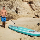 Takket være hurtig oppustning og tømning er paddleboarden nem at transportere og opbevare. Perfekt til ture til vandområder.
