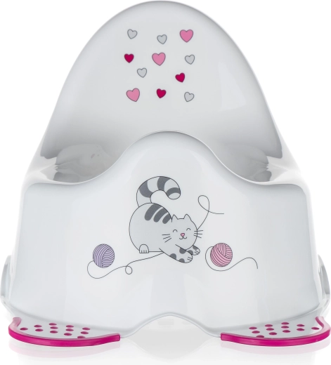 Gør pottetræningen til en behagelig og sikker oplevelse. Denne potte i hvid med et sødt kattemotiv udmærker sig ved et ergonomisk sæde og et højt ryglæn, som giver børn både tryghed og komfort. Skridsikre elementer på undersiden holder potten stabilt på plads.