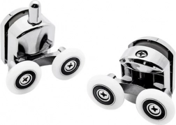 Dette universelle sæt løbere til brusekabiner sikrer jævn gang, pålidelig lukning og mindre slitage på skinnerne. Dobbelthjul på kuglelejer øger glassets stabilitet og reducerer dets vipning. Takket være den vippende konstruktion tilpasser hjulene sig profilens form – velegnet til firkantede og halvrunde hjørner.