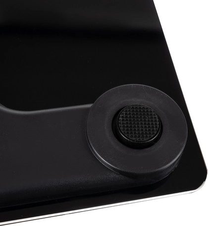 Stilfuld sort platform af 0,3 cm hærdet glas bærer op til 180 kg og giver stabil og sikker brug på badeværelset.