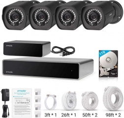 zmodo kamerasæt 4× 1080p med nvr og 1 tb harddisk