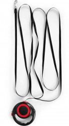 Den praktiske låsemekanisme gør det muligt med ét tryk at stoppe og fastholde båndet i den ønskede længde.