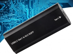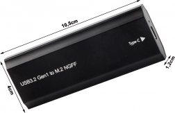 Den elegante og holdbare aluminiumsboks omdanner dit interne M.2 SATA (NGFF) SSD til en kompakt ekstern disk. Metalkabinettet hjælper med at lede varmen væk, beskytter mod stød og støv, og takket være USB‑C‑stikket får du nem tilslutning til både laptops og stationære pc'er.