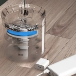 Fontænen har en stille pumpe, der ikke forstyrrer hjemmet selv ved intensiv brug og opretholder vandets friskhed med kontinuerlig cirkulation.