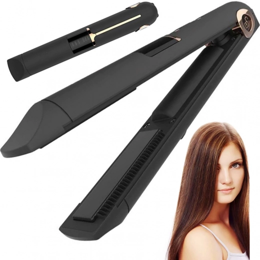 Trådløs keramisk hårglatter med LCD og powerbank 2-i-1