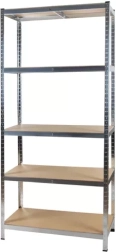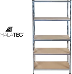 Robust lagerreol MALATEC med mål 220 × 100 × 45 cm tilbyder 5 justerbare hylder i MDF og en galvaniseret stålramme med høj stabilitet. Hver hylde bærer op til 175 kg (i alt 875 kg), og monteringen er skruefri og hurtig. Ideel til garage, kælder, værksted og lager.