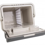 Køleboksen leveres med et praktisk håndtag og et hængslet låg, hvilket gør det nemt at få adgang til opbevarede varer. PU-isolering og en vægtykkelse på 21 mm sikrer langvarig temperaturholdning.
