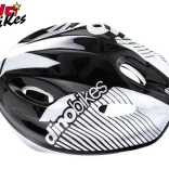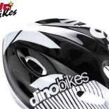 Børnecykelhjelm Dino Bikes i sort, hvid og sølv kombination sikrer maksimal sikkerhed og komfort ved cykling. Den er let, vejer kun 220 g og indeholder 5 ventilationsåbninger for optimal lufttilførsel.