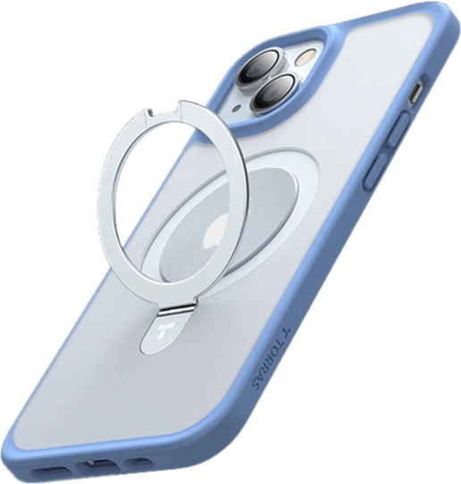 Torras Ostand Matte etui med magnetisk ring til iPhone 15 (mørkeblå)