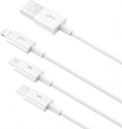 Leder du efter ét kabel, der kan klare det hele? Baseus Superior kombinerer tre af de mest anvendte stik i én løsning – Lightning, USB‑C og Micro USB. Takket være op til 3,5 A og 480 Mb/s kan du nemt oplade telefoner, tablets og tilbehør og samtidig hurtigt overføre data.